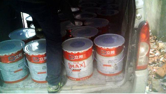 【中國涂料采購網(wǎng)】315又快到了,武漢造假工廠仍在大忙。他們主要造假名牌油漆涂料和膠水。因造的是“名牌”,銷的卻是名牌的半價,加上監(jiān)管不到位,假冒名牌在市場大行其道。這是跟據(jù)線索,在武漢漢陽永豐街轄區(qū)暗拍一地下工廠敞門造冒過程,并拍下了倉庫內(nèi)堆放滿各地的名牌油漆涂料新包裝桶。非常震驚。