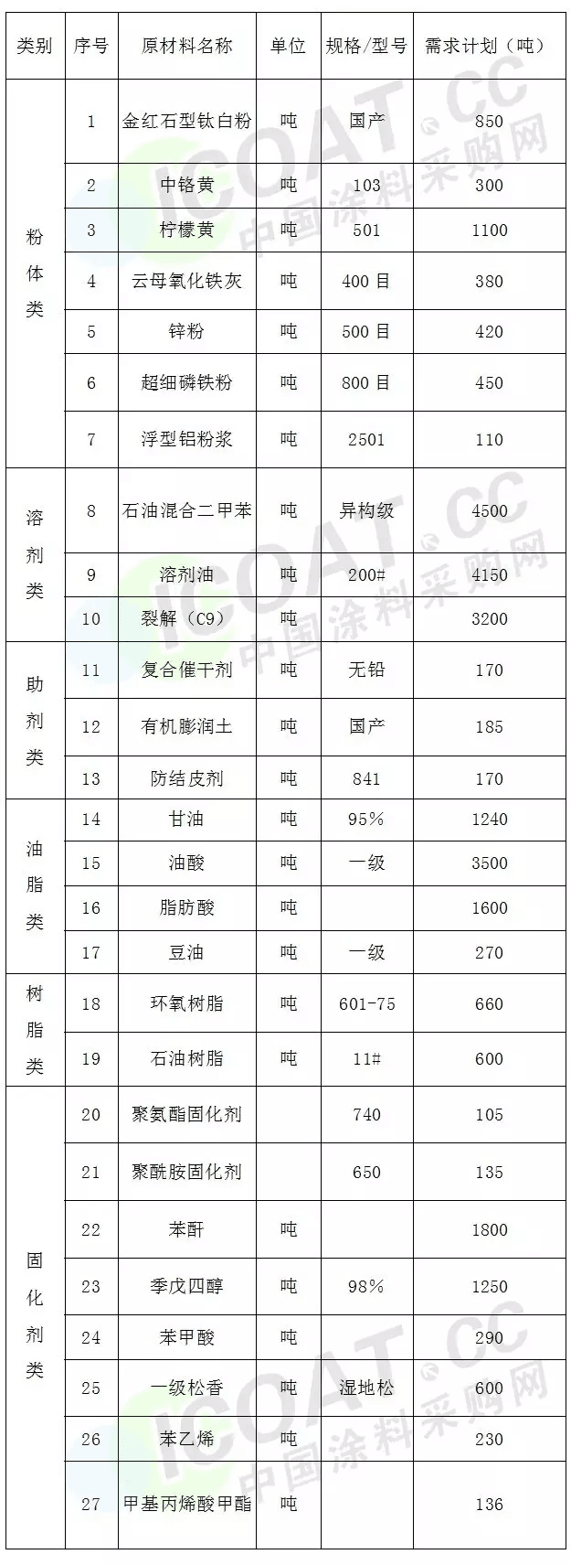 涂料企業集中委托中國涂料采購網為其提供高性價比供應商,并在其官網權威發布,具體采購如單如下: