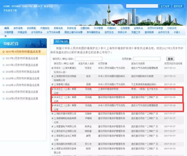 中涂化工(上海)有限公司,因違反生產性污水外運處理,遭到上海市嘉定區環保局處罰,處罰措施為“責令立即改正,并處一定罰款”,第二次因違反大氣污染防治管理制度,依據中華人民共和國大氣污染防治法,責令立即改正并處一定罰款,第三次因違反建設項目“三同時”及驗收制度,依據建設項目環境保護管理條例,被責令停止生產或使用,并處一定罰款。小編注意到,中涂化工(上海)有限公司,在2017年1月12日時,因“違反大氣污染防治管理制度”遭到上海市嘉定區環保局處罰,處罰措施為“責令改正違法行為,并處罰款”。