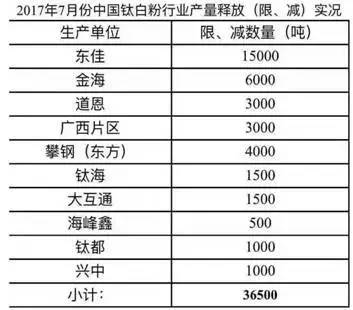 而國內 ,因環保督查,工廠檢修等問題,鈦白粉企業紛紛計劃7月減產,下圖為部分鈦白粉企業計劃減產的產量: