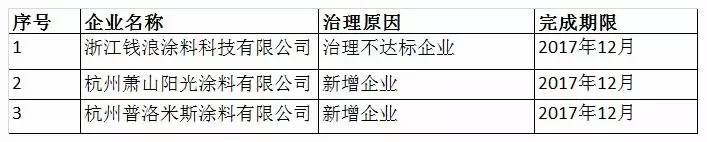 浙江杭州大江東產業集聚區3家涂料企業VOCs整治名單