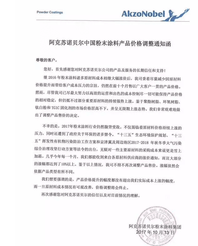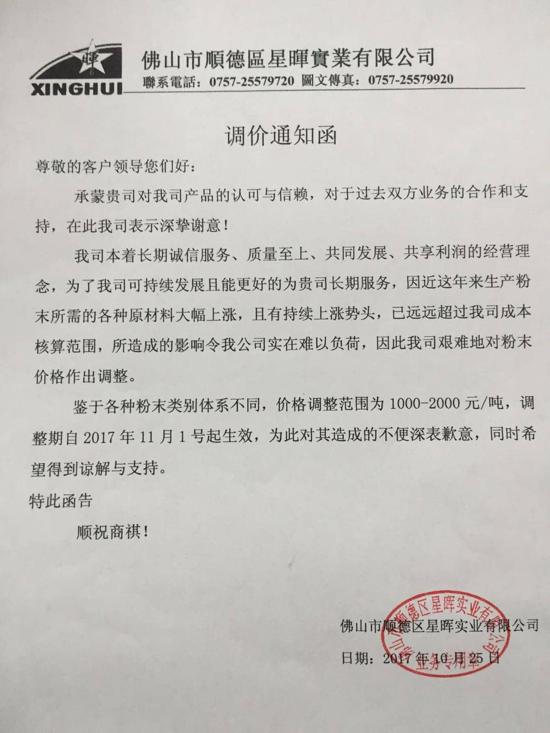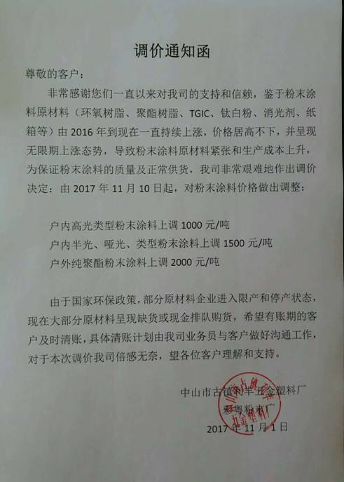 在調研過程中,我們發現,廣東地區部分粉末涂料企業之前曾宣布漲價,但是后續跟進情況并不是很好。