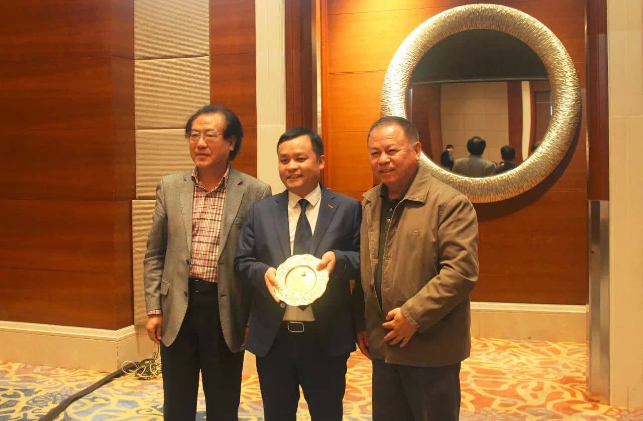 上海涂料染料行業協會秘書長張水鶴先生隨后向大會致詞。張秘書長對會議主辦方顏鈦集團多年來為推動國內涂料行業向“中國智造”綠色轉型所作出的努力表示肯定,并邀請協會特聘專家張憲康教授共同為上海顏鈦實業有限公司金政元總經理頒發2017年度“工匠精神杯”獎牌。