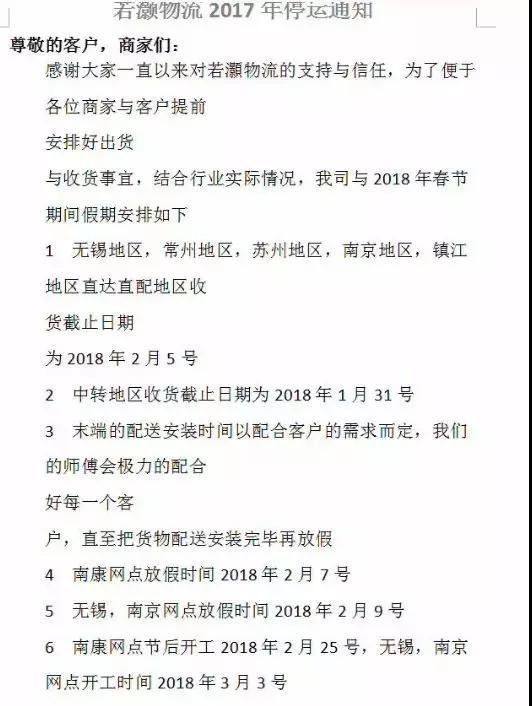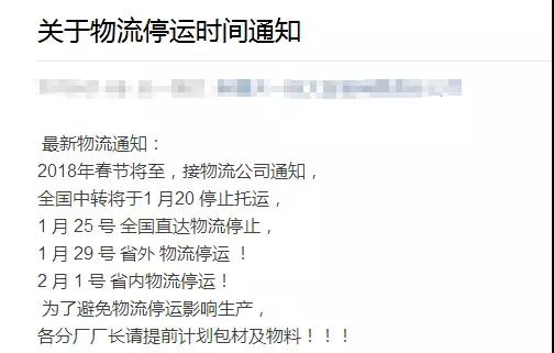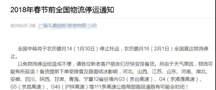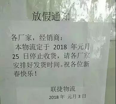 據悉,全國物流放假時間已基本確定,各地物流停運時間表大體如下(確實比往年提前了):