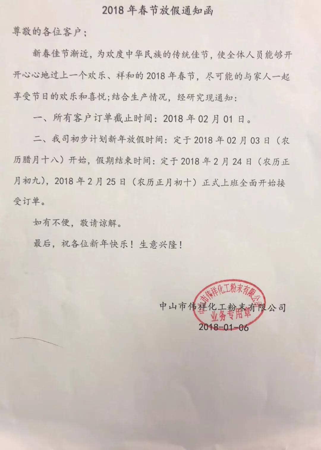 3.中山市偉祥化工粉末有限公司(放假22天)