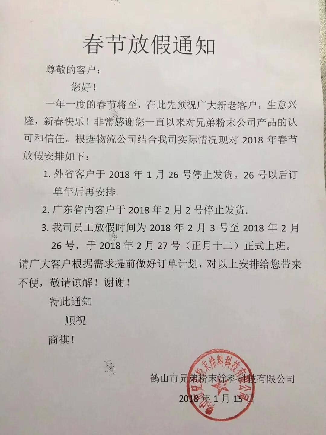 4.鶴山兄弟粉末涂料有限公司(放假24天)