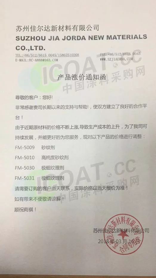 而對目前國內(nèi)原材料價格持續(xù)瘋狂漲價,國內(nèi)某水性涂料有限公司銷售經(jīng)理楊樂男表示:本次漲價是全球性一輪漲價,從國內(nèi)漲價傳導至國際市場,然后從國際市場傳導至國內(nèi)市場。另外,2018年兩會透漏出國內(nèi)環(huán)保督查沒有最嚴,只有更嚴,將進一步加大原材料價格上漲的動力,涂料企業(yè)漲價已是箭在弦上。更為嚴重的是,在各種停限產(chǎn)的大環(huán)境之下,缺貨斷貨將是行業(yè)痛點,有貨才是王道。
