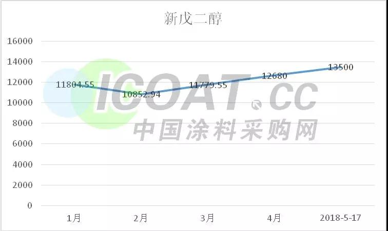 新戊二醇價格從1月份11805元/噸上漲至現(xiàn)在的13500元/噸,上漲2750元/噸,漲幅23.3%,漲幅較大。原料異丁醛持續(xù)高位,新戊成本承壓,下游聚酯需求較好,廠家出貨順暢,產(chǎn)業(yè)鏈良性發(fā)展,價值鏈有效傳導(dǎo)。預(yù)計短時間內(nèi)原料異丁醛價格還會繼續(xù)上漲,因此預(yù)計未來短時間內(nèi)新戊二醇將持續(xù)上漲。