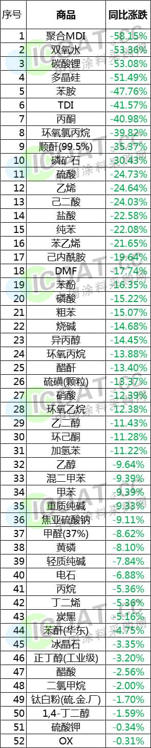 與國外化工企業(yè)形成顯明對比的是,國內(nèi)原材料價(jià)格出現(xiàn)大幅度下滑,如: