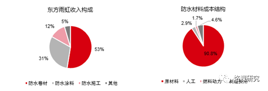 東方雨虹的核心競爭力。防水產(chǎn)品成本結(jié)構(gòu)最大的特點(diǎn)是原材料成本占比90%,要做到效率最優(yōu)就必須在原材料成本上下功夫,因此產(chǎn)品配方和規(guī)模經(jīng)濟(jì)十分重要。配方是平衡產(chǎn)品品質(zhì)和成本的核心,規(guī)模經(jīng)濟(jì)則體現(xiàn)在采購上。此外公司在管理、渠道機(jī)制、施工服務(wù)、產(chǎn)能布局等方面具備顯著競爭優(yōu)勢,以上是公司在國內(nèi)中高端防水領(lǐng)域獲得巨大領(lǐng)先優(yōu)勢的原因。