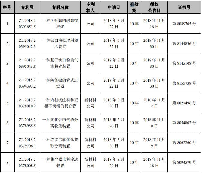 同時,龍蟒佰利聯集團股份有限公司(以下簡稱“公司”)及控股子公司河南佰利聯新材料有限公司(以下簡稱“新材料公司”)收到國家知識產權局頒發的實用新型專利證書,具體情況公告如下: