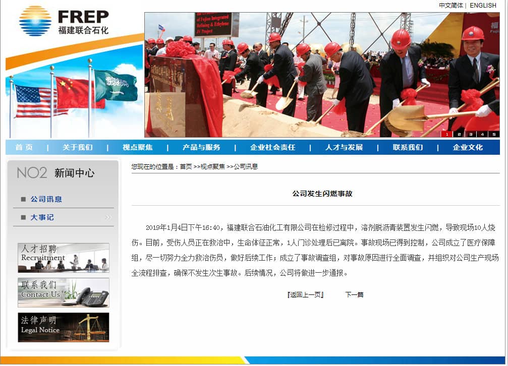 1月4日下午16時(shí)40分,福建聯(lián)合石油化工有限公司在檢修過程中溶劑脫瀝青裝置發(fā)生閃燃。記者從泉州市委宣傳部獲悉,該閃燃導(dǎo)致現(xiàn)場10人燒傷,已送往醫(yī)院燒傷科救治。