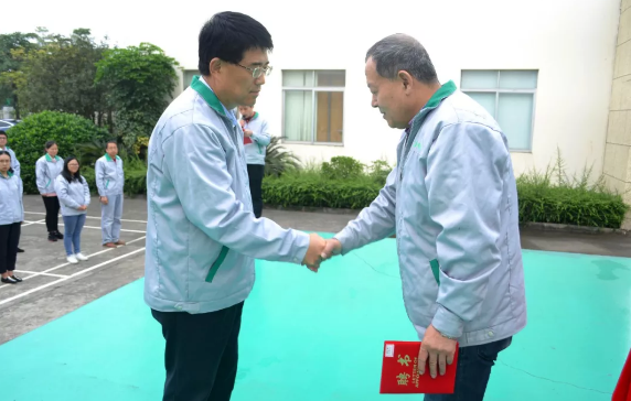 公司領導為2018年年度賢人、優秀集體行執手禮,并頒發證書和獎金。全體員工向其行周禮致敬,感恩他們的付出!