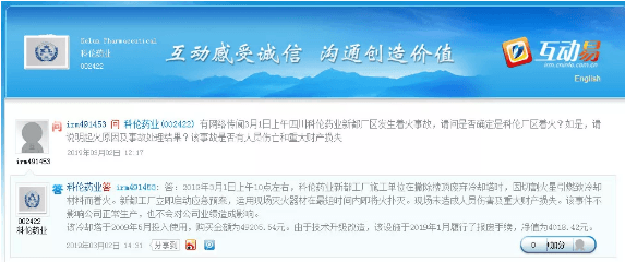 有網(wǎng)絡(luò)傳聞3月1日上午四川科倫藥業(yè)新都廠區(qū)發(fā)生著火事故,科倫藥業(yè)3月2日在深交所互動易上做出回應(yīng),稱著火事故現(xiàn)場未造成人員傷害及重大財產(chǎn)損失,不影響公司正常生產(chǎn),也不會對公司業(yè)績造成影響。