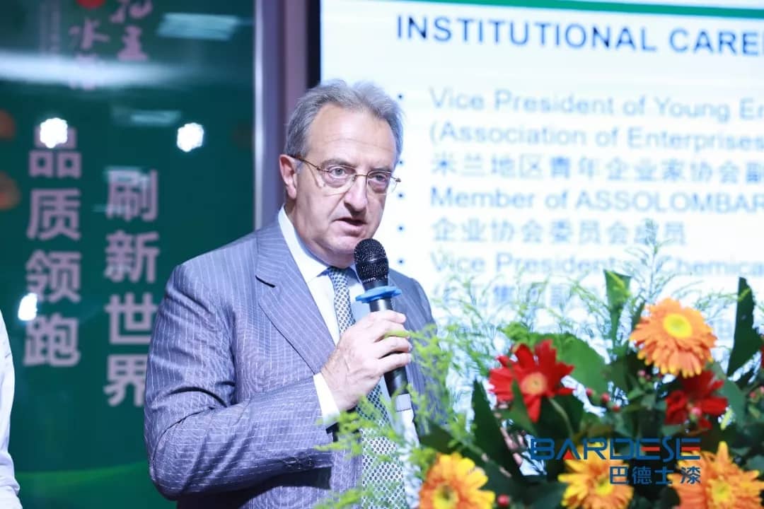 花王水漆董事長方學平先生發表致辭。其中方董重點表示:緊跟國家的步伐,是企業的責任,也是企業的根本。巴德士集團積極響應國家政策號召,已經在各子公司斥巨資打造了先進的廢水廢氣治理裝置,具備了先進地治廢能力。公司花巨大代價治廢,是一種堅定的環保決心,更攸關企業今后的定位。巴德士集團從最初只有8個人做到如今全國有7大分公司,年產值20多億元,走到中國涂料行業前列,今后也一定會在涂料行業繼續努力,做深做透。同時,在家具漆領域,公司一定有能力配合各家具企業在轉型升級中走在行業前列。