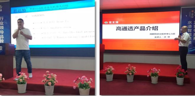 參觀結束,會議議程安排了各技術板塊工程師的產品工藝培訓,技術總工程師謝貴齊的《工程漆產品和施工工藝》、方秋元總經理的《一體板產品知識》、水性技術工程師衛書平的《水性漆產品及施工工藝》、UV技術工程師劉力磊的《UV漆產品及施工工藝》、油性技術工程師洪僚的《威蘭斯產品及施工工藝》、 噴涂設備供應商思達特李總的《智能自動化設備應用》,滿滿的干貨,讓大家受益匪淺。
