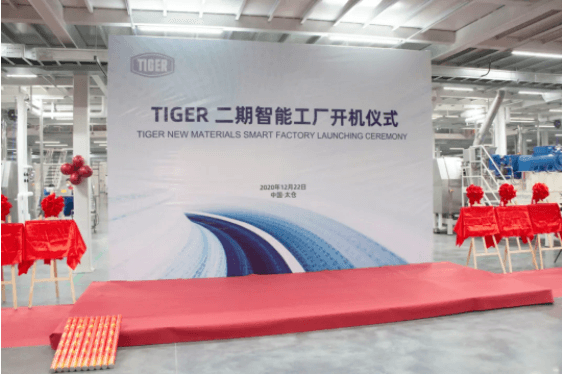 TIGER二期擴建項目于2019年11月正式啟動,致力于打造行業符合工業4.0標準的“智能化科技工廠”。項目總投資約1.5億元,新建廠房12000平方米,可擴充產能至30000噸/年。本項目擴建于老虎公司2008年取得的土地場地,項目結構封頂時間為2020年6月,本月項目完成驗收,并于今天2020年12月22日正式舉行開機儀式。
