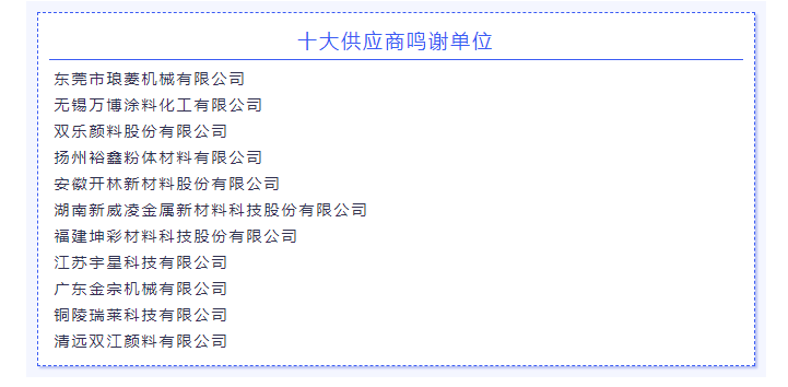 作為涂料行業最大的新媒體服務平臺,涂料采購網于2021年11月中旬發起“2021年度十大涂料供應商”線上評選活動,經過緊張而又激烈的線上競爭以及1年的實地調研,最終評選出了“2021年度十大涂料供應商”,為涂料企業在2022年的原材料采購方面提供了切實可行的參考。