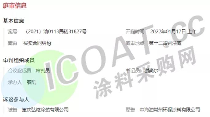 涂料采購(gòu)網(wǎng)查詢得知,中海油常州環(huán)保涂料有限公司近期官司頻頻,共計(jì)12起開(kāi)庭公告,橫跨2016年至2022年6年光景,案由均為“買賣合同糾紛”,僅2022年就有2次開(kāi)庭公告,被告分別為武漢暢維汽車零部件制造有限公司和重慶弘炫涂裝有限公司。