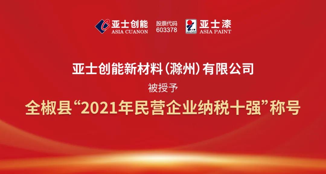1月24日,安徽滁州全椒縣人民政府發布關于擬表彰獎勵2021年稅收特別貢獻獎及民營企業納稅十強獎公示,亞士創能新材料(滁州)有限公司被授予2021年民營企業納稅十強稱號。此次榮獲納稅十強,不僅體現了亞士主動踐行社會責任、積極回饋社會,更是亞士雄厚資金實力、企業健康經營的印證。