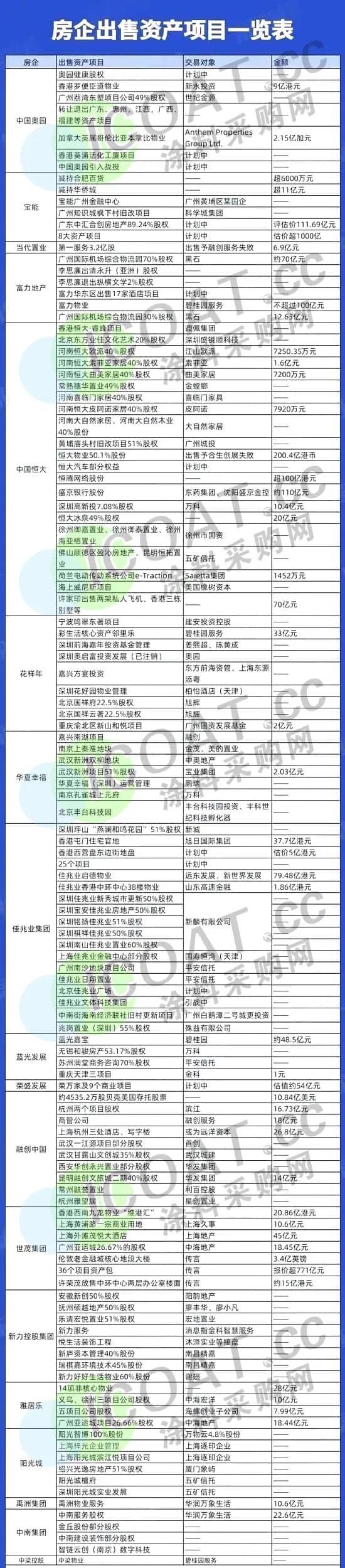 隨著地產調控政策趨緊,多家房地產企業的資金壓力持續上升,前有藍光、華夏幸福、泰禾,后有恒大、佳兆業、奧園,還有的則在爆雷的路上。房企高償債壓力之下,違約風險日益加大,越來越多的房企開始割肉賣身。恒大、融創、世茂、中南、禹洲、奧園、雅居樂、花樣年等房企,均已成功將部分資產轉讓出去。
