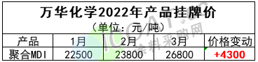 萬華化學(xué)聚合MDI產(chǎn)品連漲2次,目前報價較年初上漲4300元/噸。