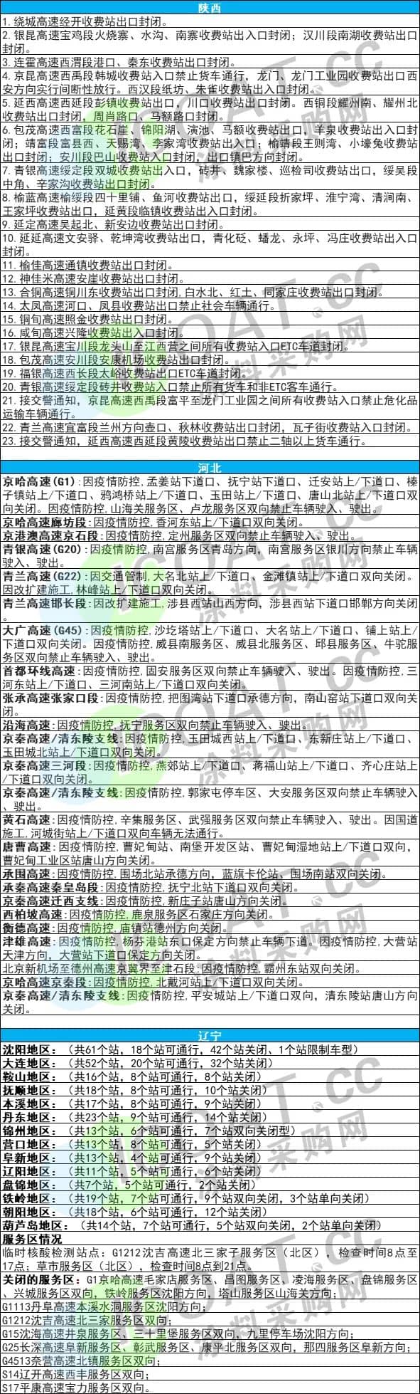 受持續肆虐疫情的影響,浙江、陜西、山西、江蘇等十幾個地區陸續升級防控措施,宣布臨時關閉高速公路出口及服務區。涉及長三角、東北、西北、華北等省份,僅僅江浙地區已關閉的高速出口及服務區就高達193個(其中服務區55個、高速出口138個)。