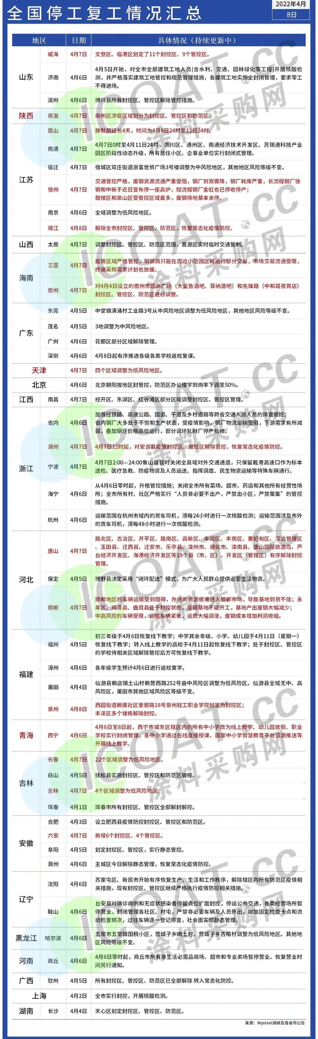 頻頻違約爆雷帶來的工程停滯并不是最可怕的,更為雪上加霜的是,疫情帶來的影響導致工地停工停產。截至4月8日,共有21個省份發布了停工復工最新信息,多個地區工地停工、企業停產,采取了多種嚴格的管控措施。