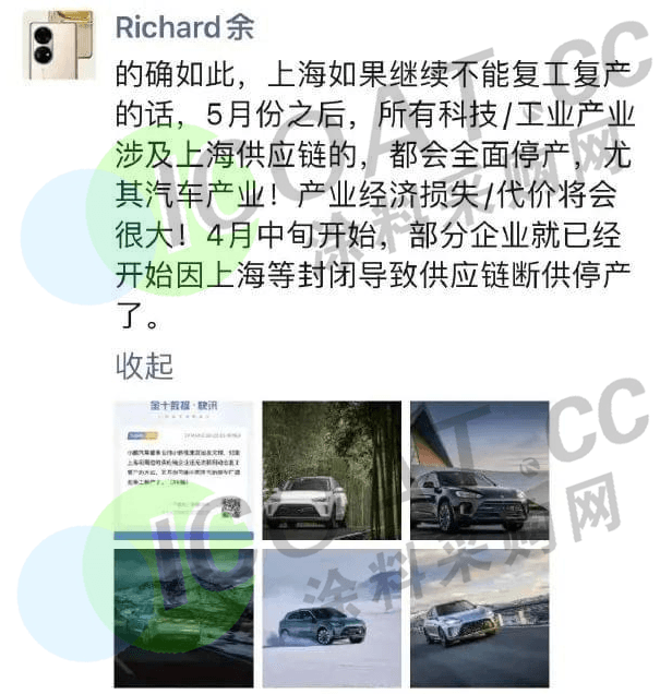外資企業(yè)或者龍頭企業(yè)尚且可以在其他地區(qū)的工廠進(jìn)行生產(chǎn),只是跨省運(yùn)輸和調(diào)配面臨困境,但上海部分中小型本土涂料廠,則面臨徹底“躺平”的處境,無(wú)力掙扎。再加上下游房企工程停工,工地全面叫停,汽車企業(yè)停產(chǎn),裝修旺季也憑空消失的慘烈局面,更是叫苦不迭。