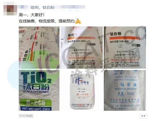 某鈦白粉、助劑供應商表示,物流受限請提前預約。