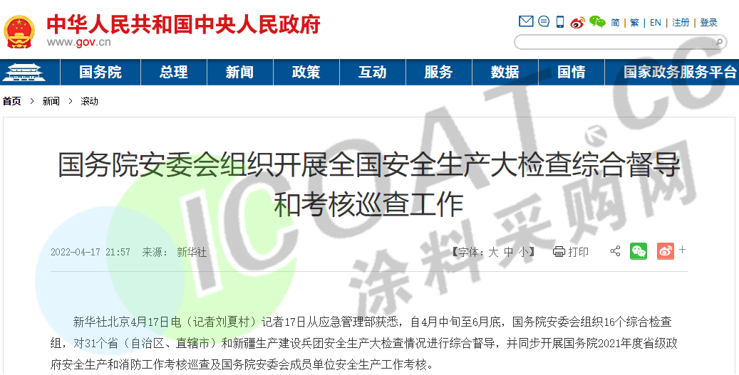近日,國務院安委會宣布,自4月中旬至6月底,國務院安委會組織16個綜合檢查組,對31個省(自治區、直轄市)和新疆生產建設兵團安全生產大檢查情況進行綜合督導,并同步開展國務院2021年度省級政府安全生產和消防工作考核巡查及國務院安委會成員單位安全生產工作考核。