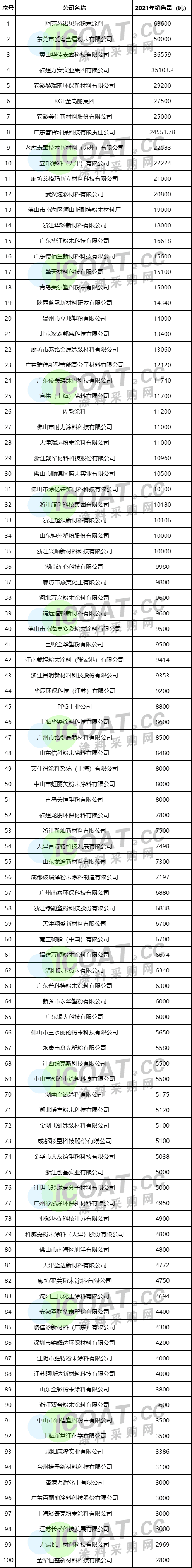 2021年銷售量百強(qiáng)企業(yè)名單如下: