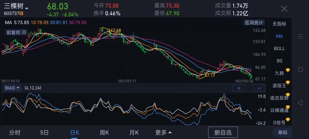 三棵樹股價下跌16.82元,跌幅18.85%,市值蒸發63億元;