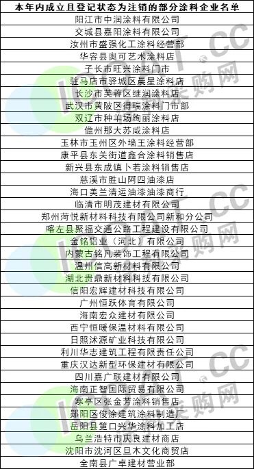 另外,處于簡易注銷和注銷備案處境的涂料企業也不在少數,值得注意的是,本年內成立且目前的經營狀態已經處于注銷階段的超過500家。