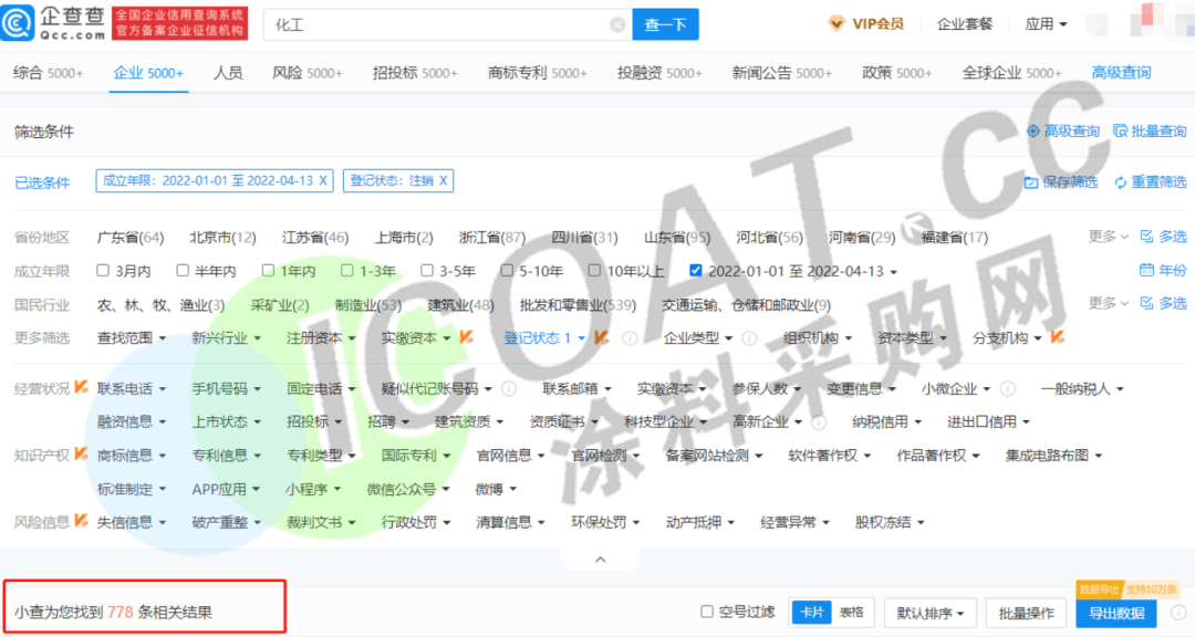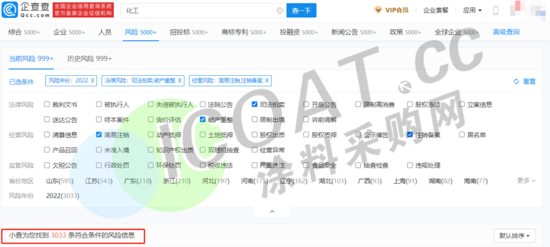 而在化工行業,倒閉、破產或者目前情況焦灼的則更多一些。據涂料采購網不完全統計,僅3個多月的時間里,化工行業(含化工品制造、銷售等企業名稱中包含“化工”關鍵詞的企業)超過3000家,覆蓋的區域包括山東、浙江、河南、河北、遼寧、上海等,可謂是從東到西,從南到北均被涉及。