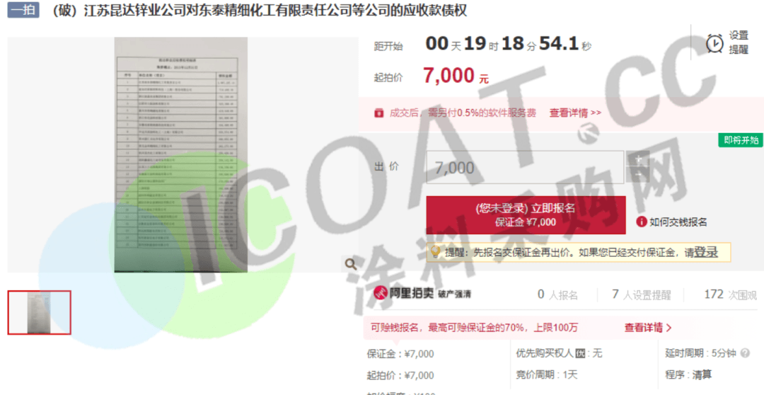 部分涂料企業司法拍賣