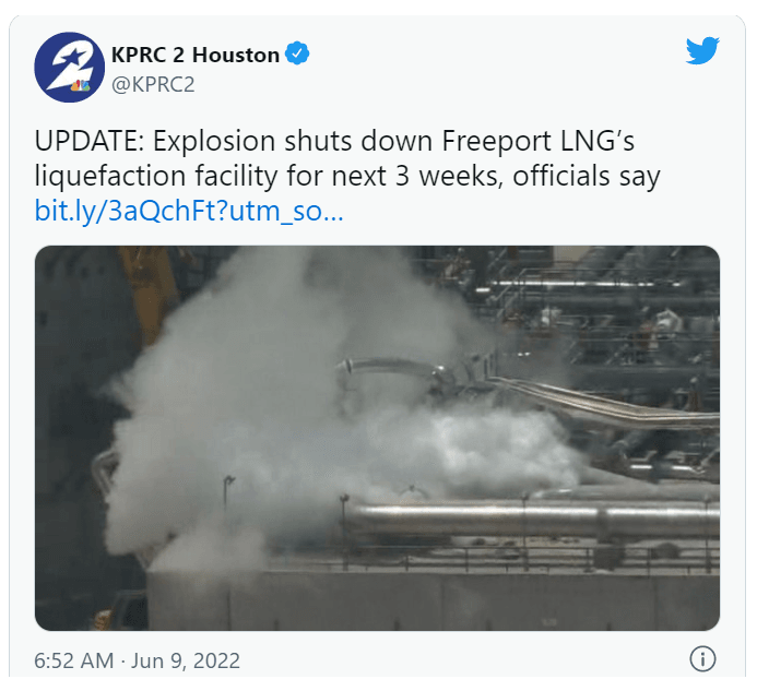 自由港終端作為美國最大的液化天然氣加工和出口設施之一,每天接收約20億立方英尺的天然氣,約占美國LNG出口能力的16%,終端設施對管道輸送來的天然氣進行液化之后,再裝船出口。該自由港的客戶包括歐洲的英國石油、道達爾能源,日本的東京電力、大阪燃氣和韓國的SKE&S。自由港出口終端歷來將大部分貨物運往日本和韓國,但停工將影響歐洲,這給本就緊張的全球天然氣供應帶來進一步壓力。
