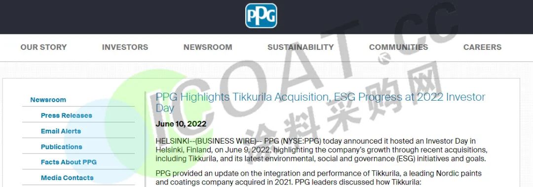 2月7日,PPG宣布已簽署協議,收購位于意大利米蘭的工業涂料公司Arsonsisi的粉末涂料業務,該交易預計將于2022年第一季度完成。