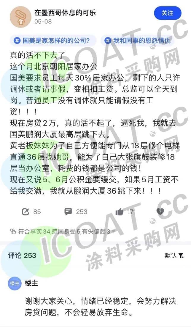 近日,知名家電品牌國美集團再遭吐槽。數(shù)名國美員工表示,自從北京多個區(qū)縣實施居家辦公以來,國美內(nèi)部強制員工請年休假和事假,并且期間不發(fā)放薪水。社交平臺上,也有不少國美員工驗證了上述說法,“國美要求員工每天30%居家辦公,剩下的人只許調(diào)休或者請年假,變相扣工資。”