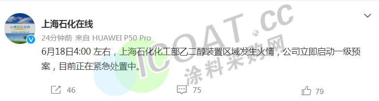 昨日(18日)凌晨4時(shí)左右,上海石化化工部乙二醇裝置區(qū)域發(fā)生火情,經(jīng)初步核實(shí),目前事故導(dǎo)致上海石化1名員工手臂輕微擦傷,1名第三方運(yùn)輸車輛駕駛員死亡,具體原因正在進(jìn)一步調(diào)查。目前,現(xiàn)場火勢已經(jīng)得到控制,正在實(shí)施保護(hù)性燃燒。