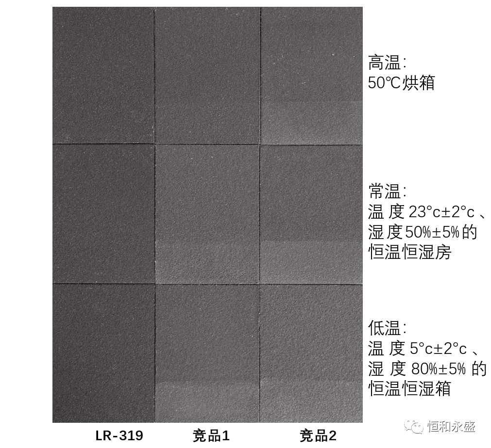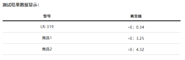 測試小結:由實驗測試結果可以看出,LR-319的展色性和高低溫色差、耐水性比競品好。