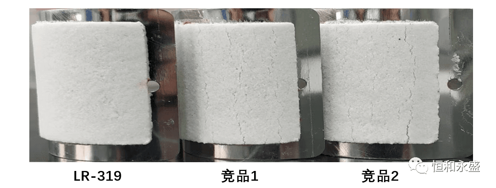 測試小結:由測試結果顯示,LR-319標準狀態下粘接強度≥0.6MPa,凍融循環后粘接強度≥0.4MPa,通過國標JG/T24-2018標準,而競品未能通過國標,故LR-319粘結強度比競品佳。