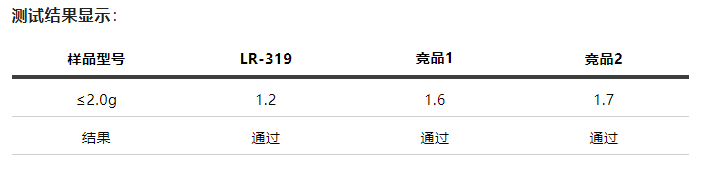 測試小結:由測試結果顯示看出, LR-319與競品吸水量均小于2g,均能通過國標。