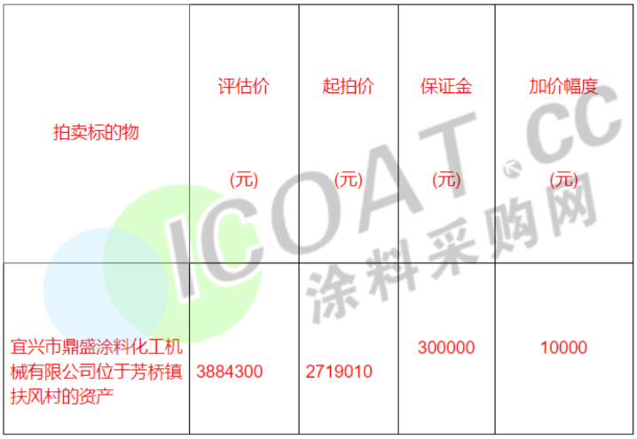 拍賣標的:宜興市鼎盛涂料化工機械有限公司位于芳橋鎮(zhèn)扶風村的資產(chǎn)等標的物。