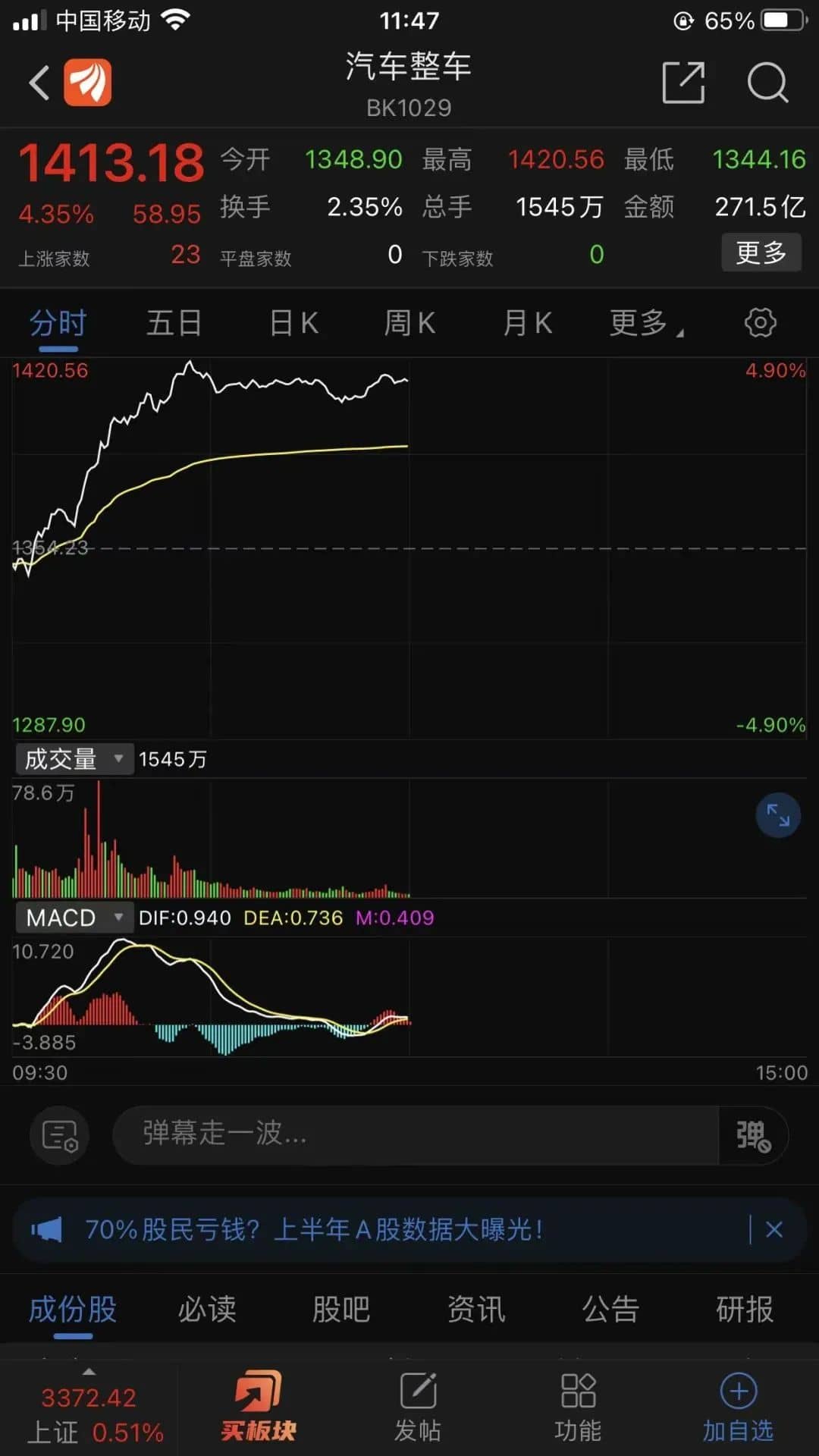 如此利好的消息引起了股市巨震,截至當(dāng)日上午收盤,A股市場汽車整車板塊大漲4.35%,A股汽車板塊個(gè)股紛紛走高。其中福田汽車、江鈴汽車、安凱客車等紛紛漲停,金龍汽車、小康股份、江淮汽車、廣汽集團(tuán)的漲幅也都在6%以上。