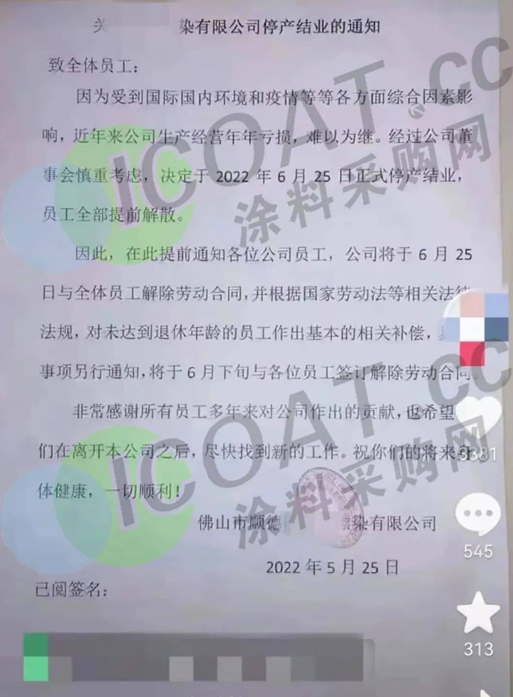 據涂料采購網了解,近期停產、停業、放假、結業的企業并不在少數,降薪、裁員也此起彼伏,其中包含了制造業、電子、外貿等多個行業,可見眾多領域已經迎來“凜冬”。