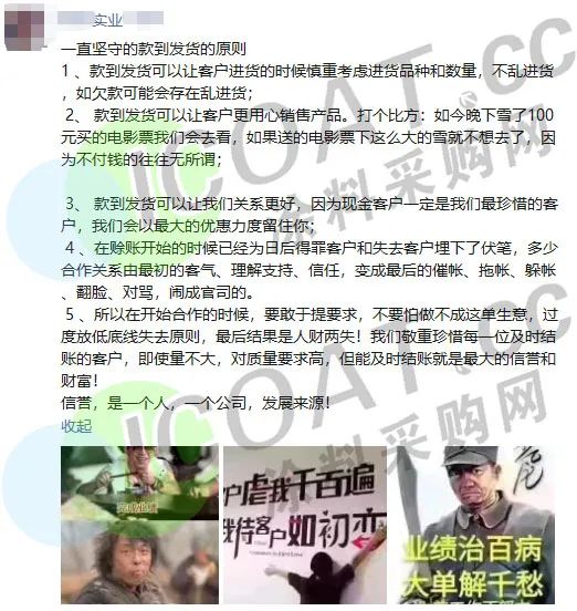 某粉末廠表示,今年回款不好的客戶,將不再有欠款支持,你資金有壓力的時(shí)候,我沒(méi)停止供貨,我資金回籠的時(shí)候也不想聽(tīng)你的任何悲慘故事,欠出去的是信任和感情。