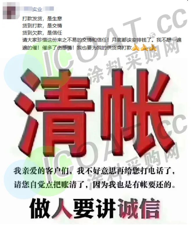 另有多家涂料、化工企業(yè)為了緩解貨款壓力,誠(chéng)懇請(qǐng)求未付款的客戶抓緊時(shí)間安排回款。