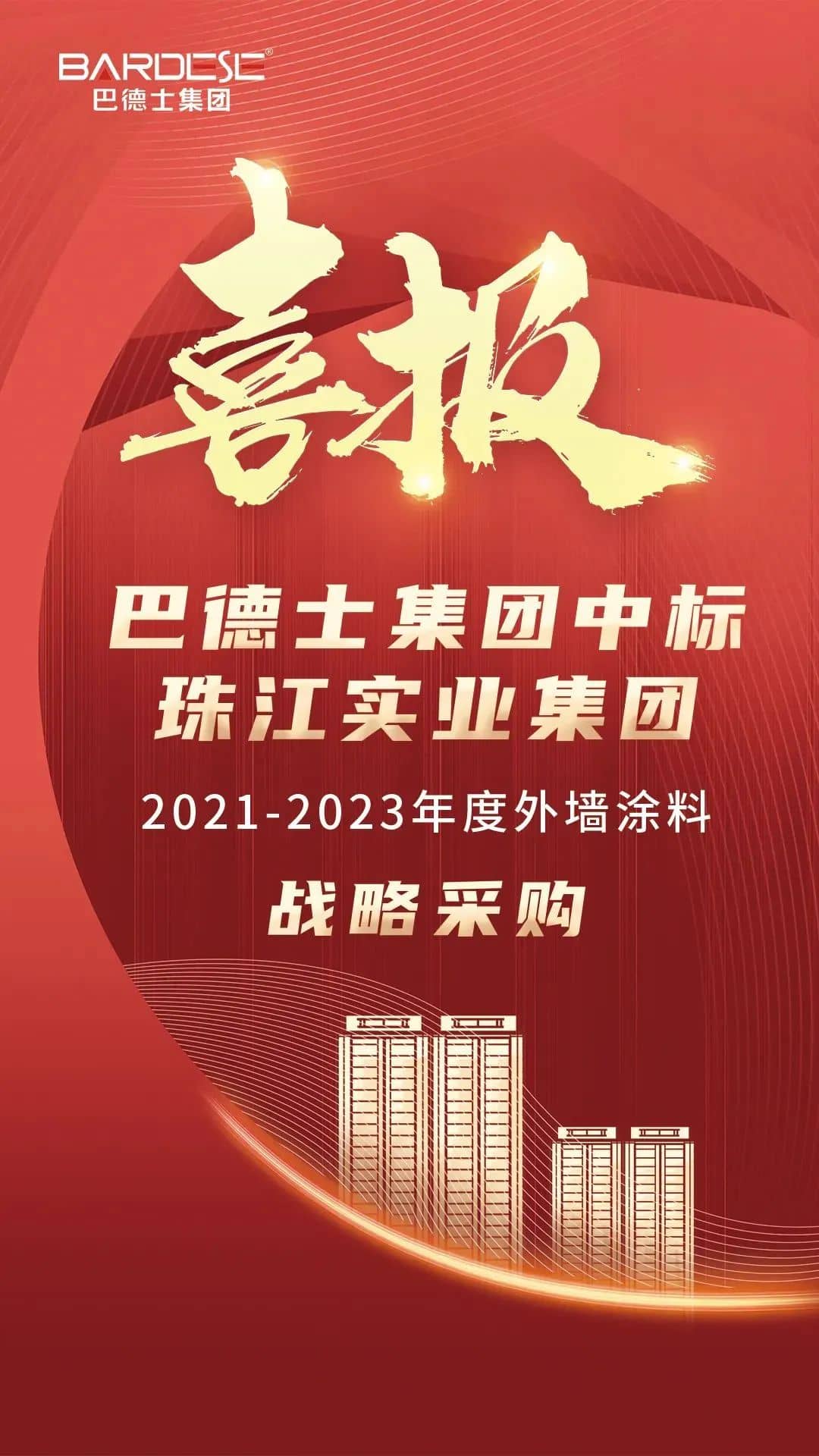 巴德士成功中標珠江實業集團2021-2023年度外墻涂料供貨及施工戰略采購。