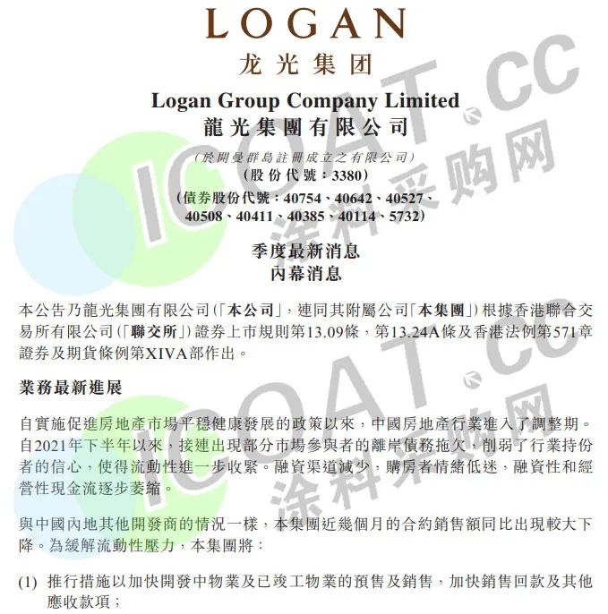 近日,房企“優等生”龍光集團宣布暫停支付5筆境外美元優先票據到期的利息,正式宣布違約。龍光集團表示,自2021年下半年以來,接連出現部分市場參與者的離岸債務拖欠,削弱了行業持有者的信心,使得流動性進一步收緊。融資渠道減少,購房者情緒低迷,融資性和經營性現金流逐步萎縮。